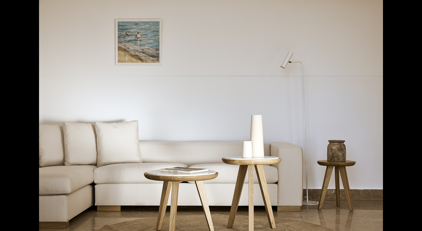 One living room with seating corner & dinner table