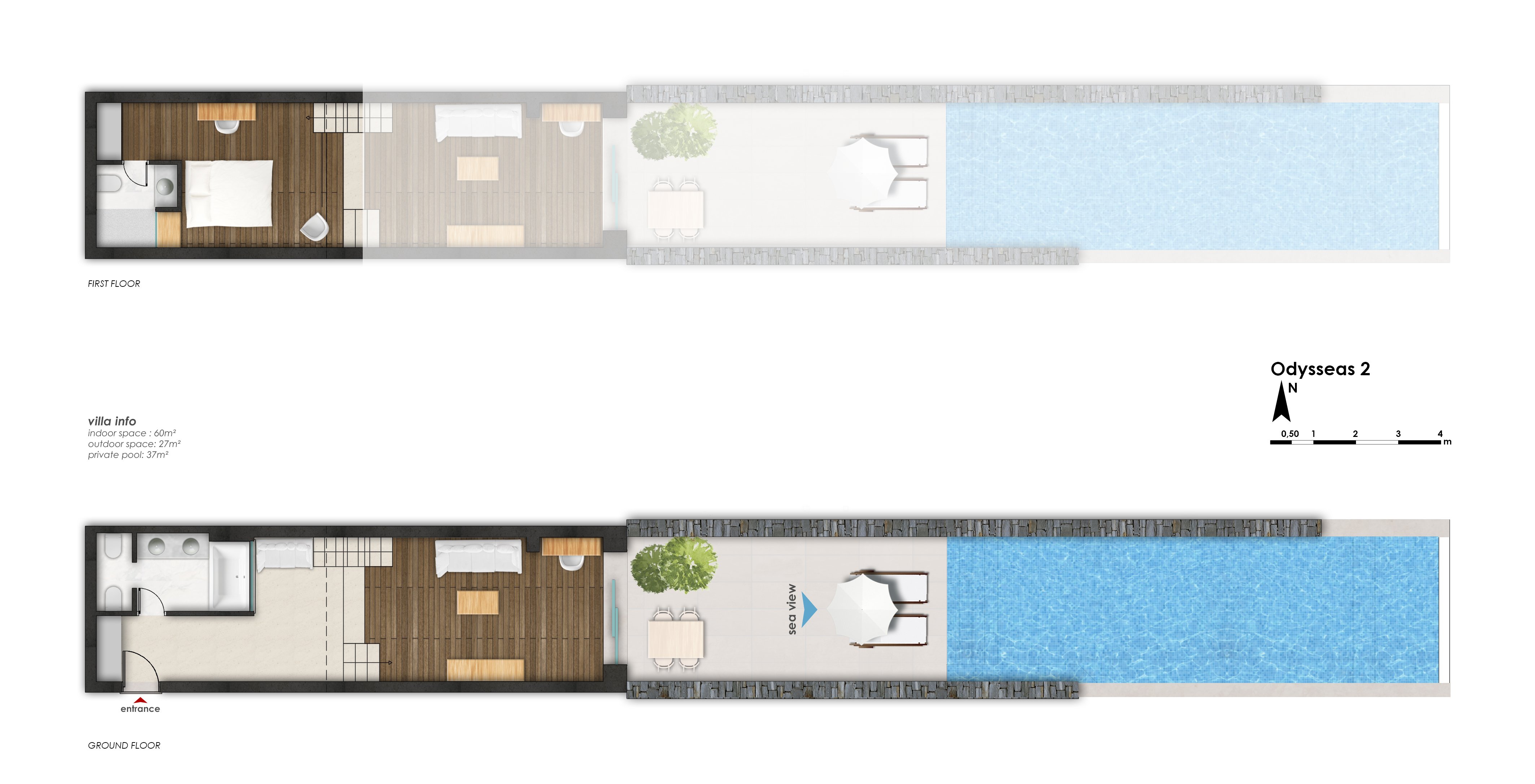 Odysseas 2 – Клубный мезонин Сюит открытой планировки с собственным бассейном у моря
